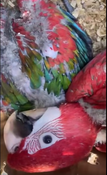 Durante la verificación, se constató que transportaba un guacamayo azul juvenil (Anodorhynchus hyacinthinus) y dos guacamayos rojos pichones (Ara chloropterus), todos vivos.