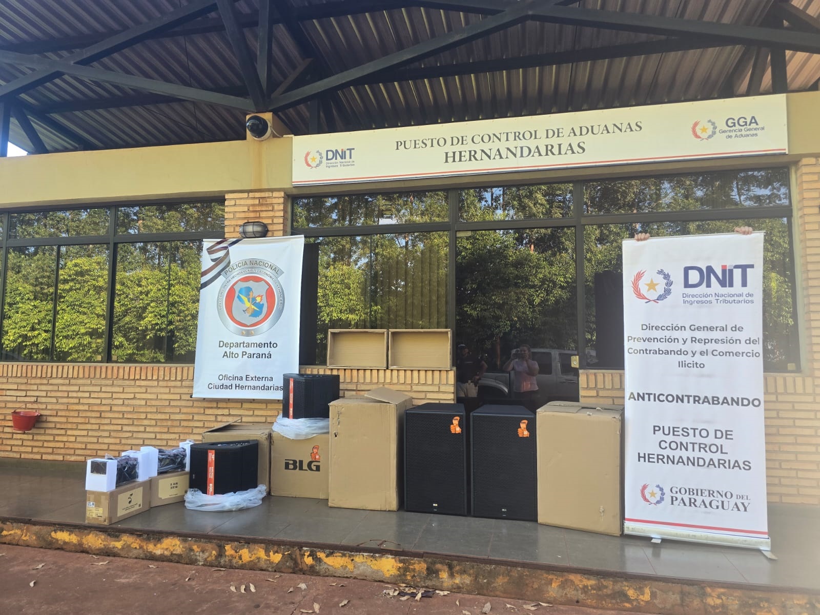 Durante el procedimiento, se interceptó un automóvil Volkswagen Parati, color azul, conducido por el ciudadano brasileño Eber Souza Lima, de 29 años, quien transportaba seis equipos de sonido de la marca BGl bm12 sin contar con las documentaciones respaldatorias.