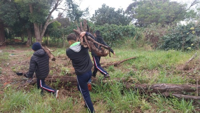 Más de la mitad de los 170 alumnos de la Escuela Básica N° 7108 y el Colegio Nacional República del Paraguay hacen fogatas y toman clases a la intemperie tras la clausura de un viejo pabellón.
