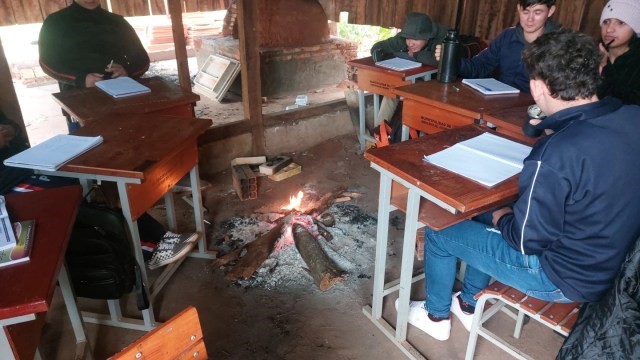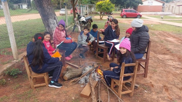 En plena ola de frío, los niños y adolescentes de la comunidad Yaguareté Forest enfrentan una dramática situación: Asisten a clases sentados alrededor de fogatas, intentando combatir las bajas temperaturas para poder estudiar.