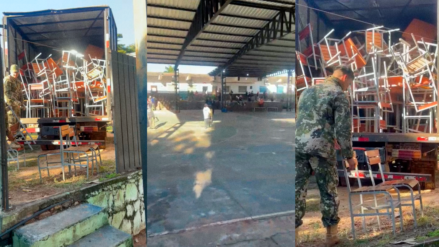 MILITARES RETIRAN MOBILIARIO ESCOLAR Y CAUSA INDIGNACIÓN