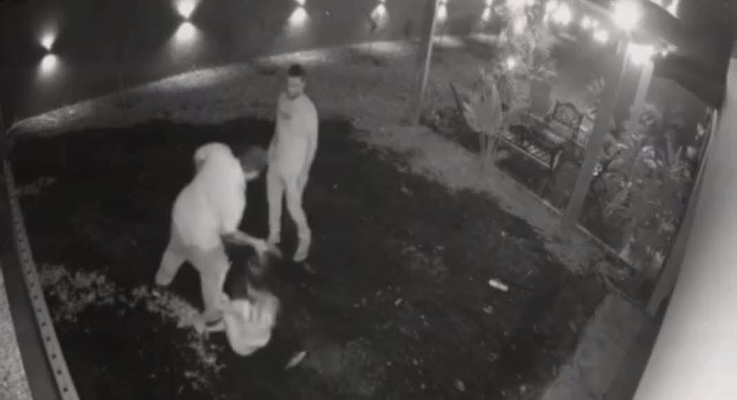 Según el video de la cámara de seguridad, una mujer fue salvajemente atacada por el primo de su propio esposo, quien la amenazó con un arma de fuego antes de arrastrarla por el suelo y golpearla con extrema violencia, incluso con patadas en el rostro.