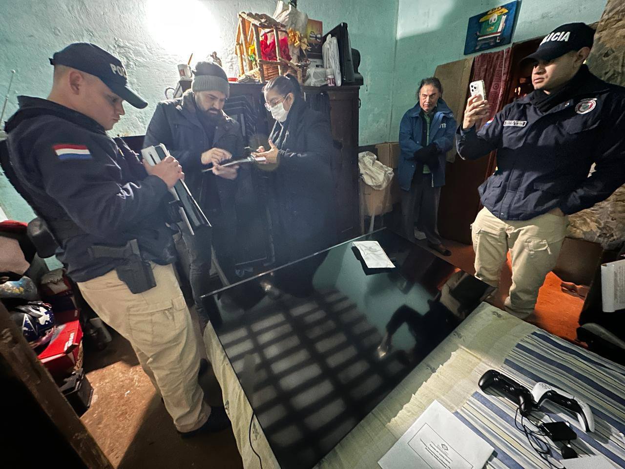 Durante los allanamientos simultáneos, autorizados por el Juzgado Penal de Garantías del Segundo Turno de Asunción (Oficio A.I. N.º 301), se incautaron celulares de alta gama (modelos iPhone 13, 14, 15 y 16 Pro Max con IMEIs relacionados), motocicletas, televisores y documentos clave para la causa.